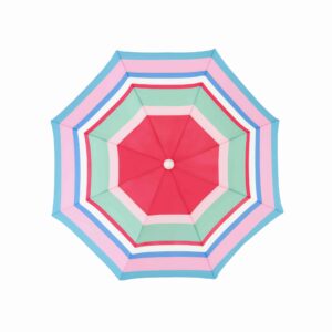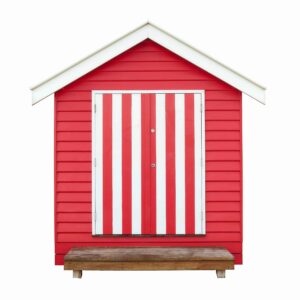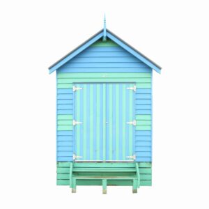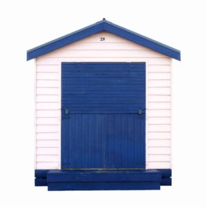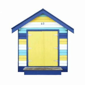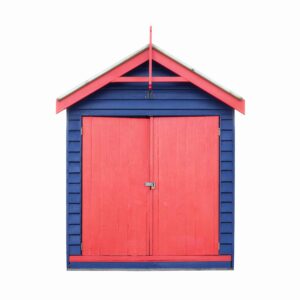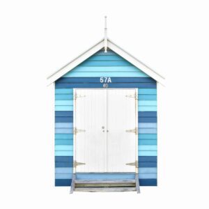 The series is comprised of three main collections. Playfully patterned beach umbrellas are photographed from an aerial perspective, while multicolored beach huts, known as bathing boxes are individually photographed along Brighton Beach in Melbourne, Australia. All elements are digitally removed from their environment and placed against white backgrounds for a brighter, more graphic direction.